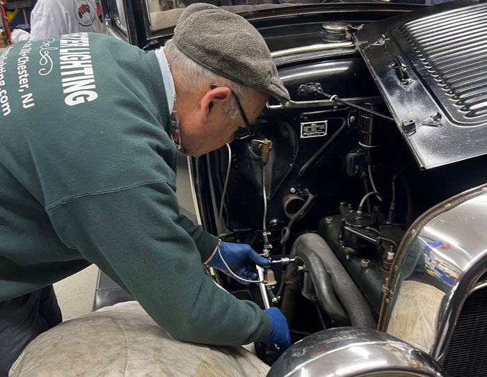 The garage clinic on March 28 was well attended with more than 15 members and guests. We attended to 3 model A’s with two brake jobs and one exhaust manifold. The first brake job on a Cabriolet was fairly straight forward job for John Hunter , a simple adjustment on the rods. The second was a fordor sedan; this job started with removing the rear drum to find that a spring had broken and a few of the lugs had loosened from their swedge. After assembly and disassembly a few times we were finally able to get the car back on the road.